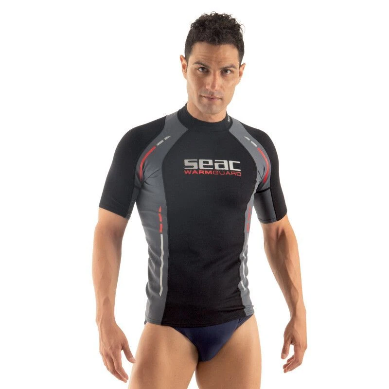 Seac Warm Guard à manches longues et courtes protège complètement le torse et les bras pour empêcher l’irritation causé par le frottement des équipements, des fonds rocheux ou le contact avec des méduses et d’autres phénomène urticant . La protection qu’offre le tissu de néoprène compressé en 0,5 mm à la fois contre le froid et les rayons UV nocifs du soleil. Seac Warm Guard adhère au torse comme une seconde peau, ce qui évite la formation de poches d’air gênantes et les plis de tissu, coutures plates pour éviter tout frottement. Excellents aussi comme sous-couche. Le t-shirt pour plongée et apnée, le snorkeling et autres activités nautiques. Seac Warm Guard est disponible en manches longues ou courtes et en tailles différentes pour les hommes et les femmes
