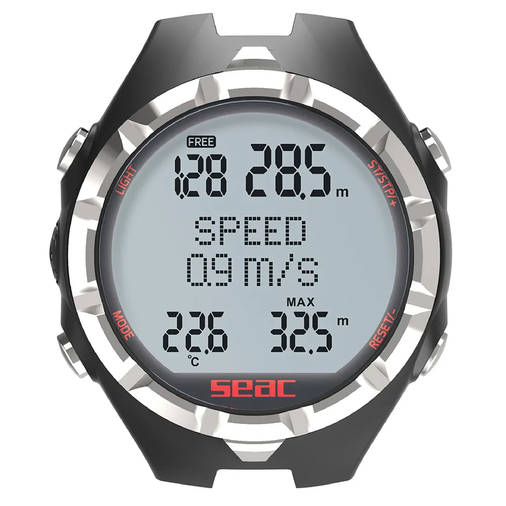 Vitesses de plongée/remontée, température, temps de plongée total et profondeur, le tout sur le même écran.