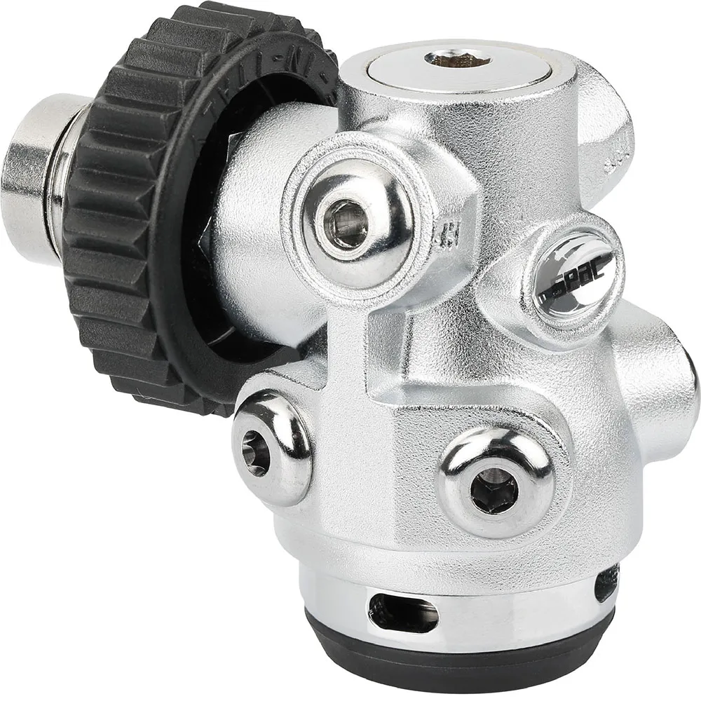 Matériau du corps de la première étape: laiton forgé avec finition chromée sablée Caractéristiques de la première étape: diaphragme équilibré hautes performances, entièrement isolé de l’extérieur, sécurité maximale et facilité de révision Matériau de la deuxième étape: technopolymères et élastomères, avec composants et capot en métal Traitement anti-rayures de la technologie de luxe Caractéristiques de la seconde étape: possibilité de réguler l’effort respiratoire et l’effet Venturi: ports HP: 2 ports LP: 4, dont 2 inclinés à 20 ° et 2 inclinés à 30 °.
